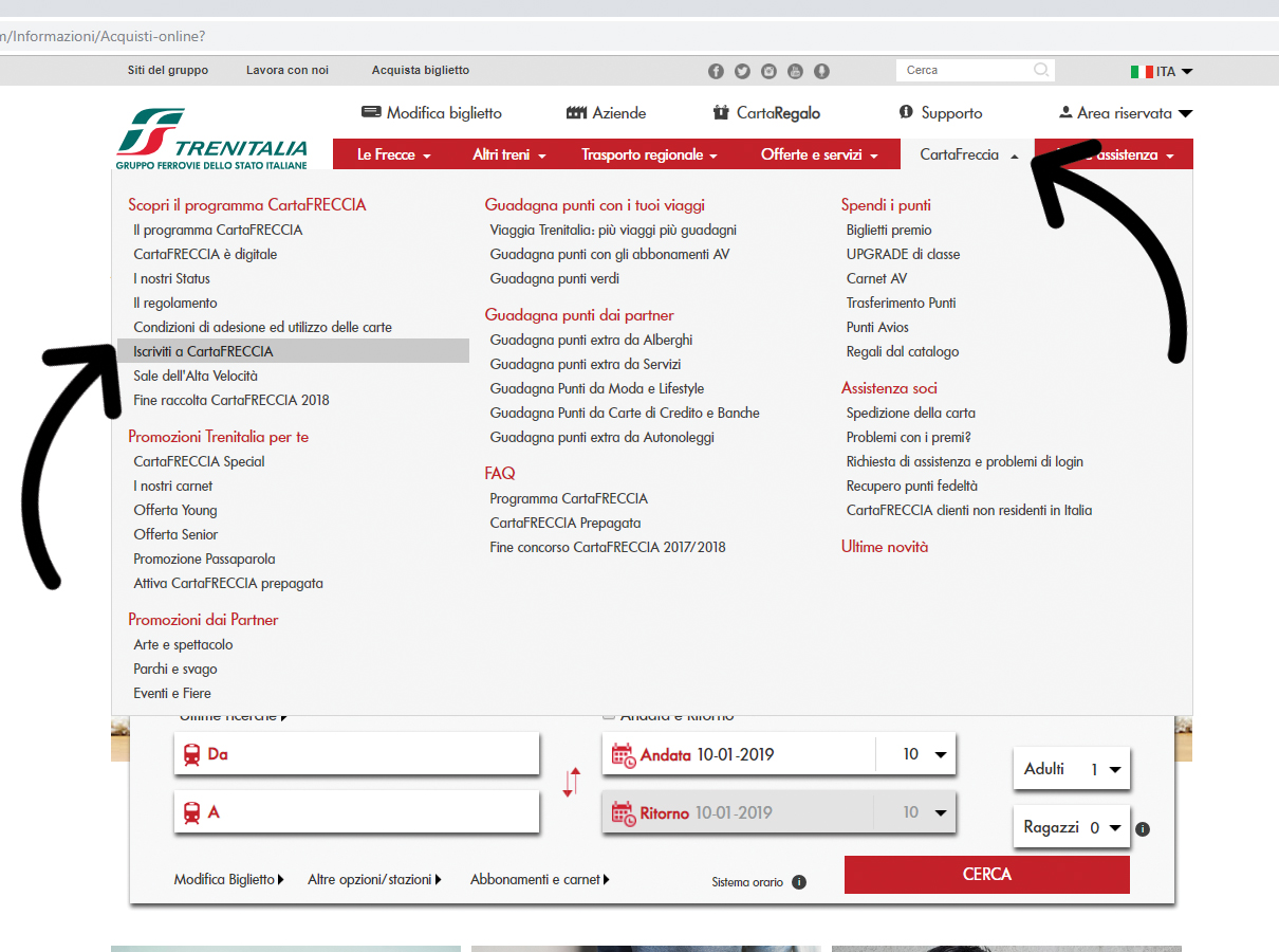 Go to the Italian version of the Trenitalia website. Select Cartafreccia from the menu then Iscriviti a CartaFRECCIA to find the registration form.