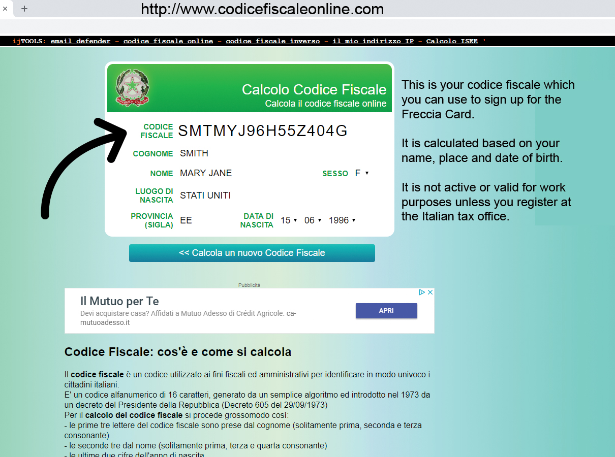 You should remember that this is not the same as a social security number. This information is freely available online. You will need to make a note of the number so you can use it during the Carta Freccia registration process.
