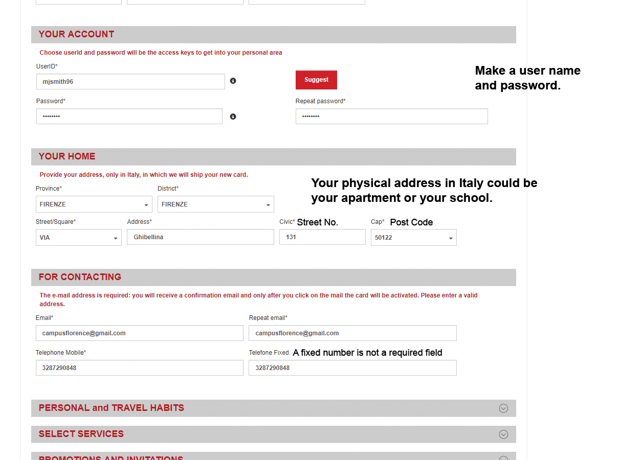 If after reading all of my notes, you still can’t get the website to work, feel free to come into the Campus Florence Office (c/o FlorenceForFun) and we can help you fill in the form.
